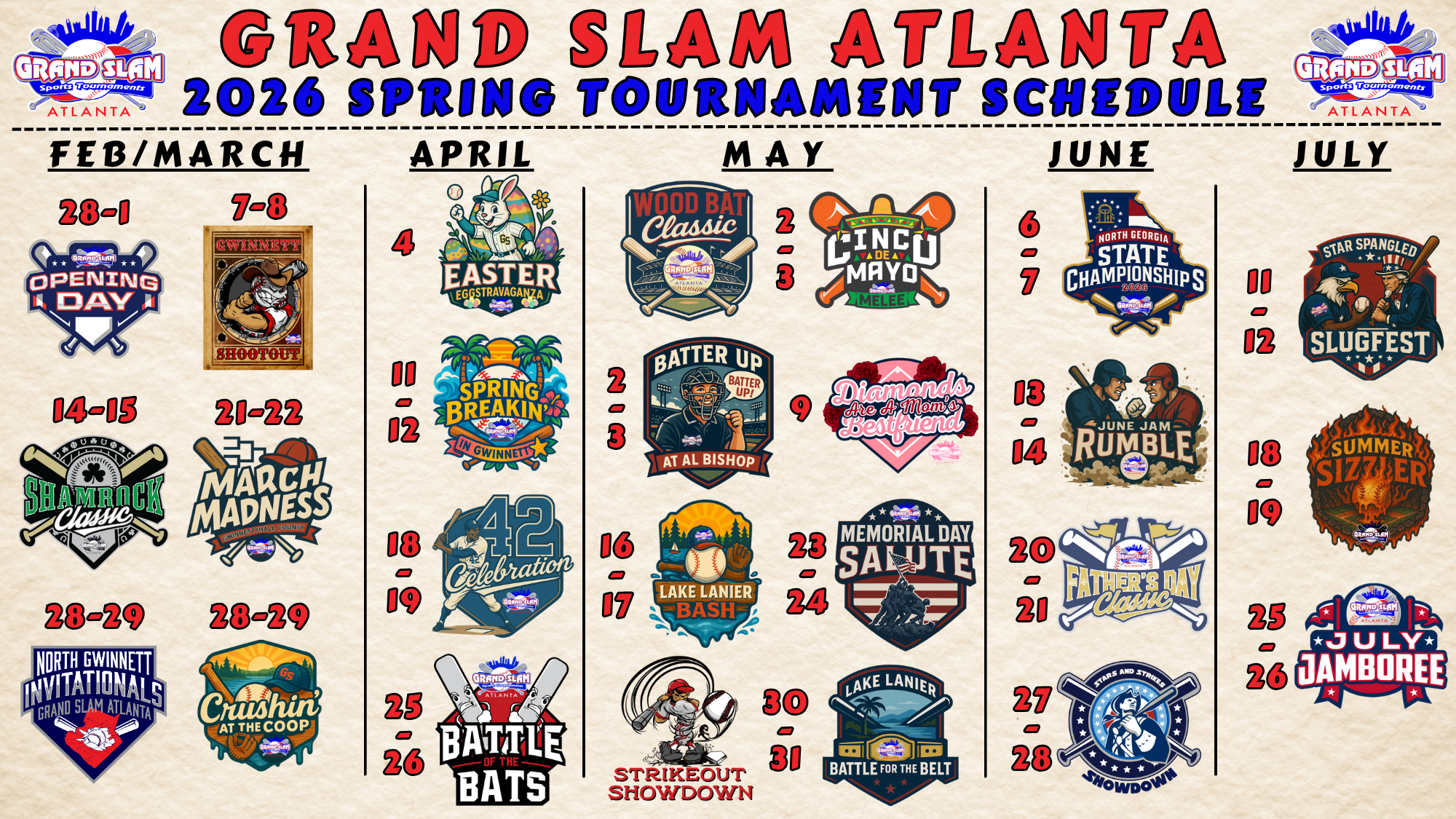 *Play in FIVE spring/summer Grand Slam Atlanta events and get the 6th entry fee free (must be redeemed by the June 6th Georgia State Championships).
